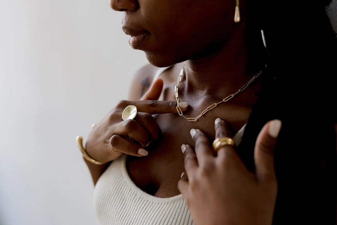 The Sienna Ring in a minimal, versatile ring to be worn alone or stacked with others. This ring adds a glistening, chic touch to any outfit.