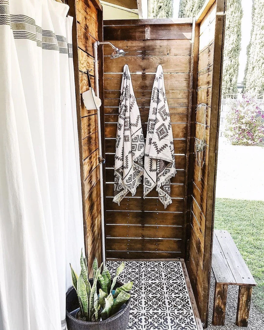 The dual-sided Theoria Throw can be used as a bath/beach towel or as a scarf. Lightweight, absorbent, and machine washable. An everyday accessory for your home or travels. This pattern is designed after traditional Turkish Kilim rugs.