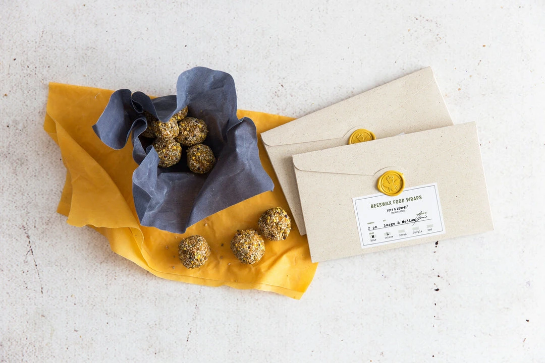 Beeswax wraps are water-repellent and flexible. Cover vessels and plates with the cloth, cling to cut fruit and vegetables, wrap salads and herbs, wrap cheese, bread and slices. Use the heat of your hands to mold the wax to the surface you are covering. Do not use to store fish or raw meat.