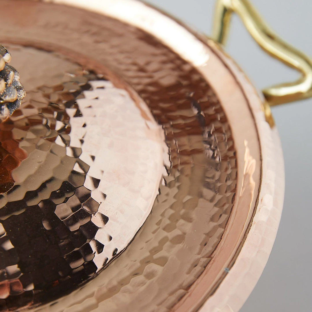 • Crafted from 100% recycled and hammered copper, lined with tin