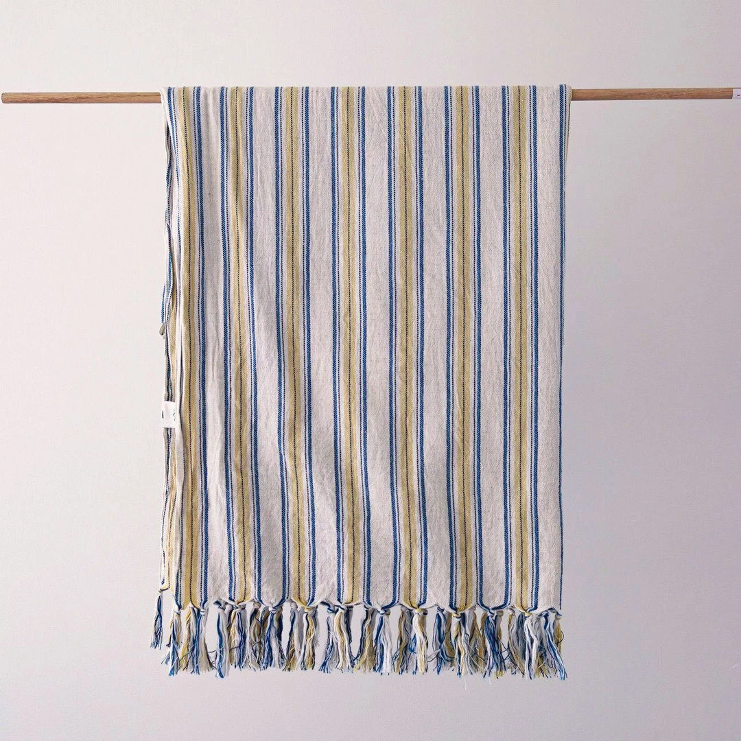 The yellow and blue Elio Turkish towel can also be used as a shawl, a scarf, a throw or a blanket. Since it is compact and dries very quickly you can bring your towel to the beach, the pool, the spa, your yoga class. Turkish towels (or peshtemals) have been used for centuries in hammams, the traditional Turkish baths, where bathing is a slow, relaxing ritual rather than a quick, daily need.
