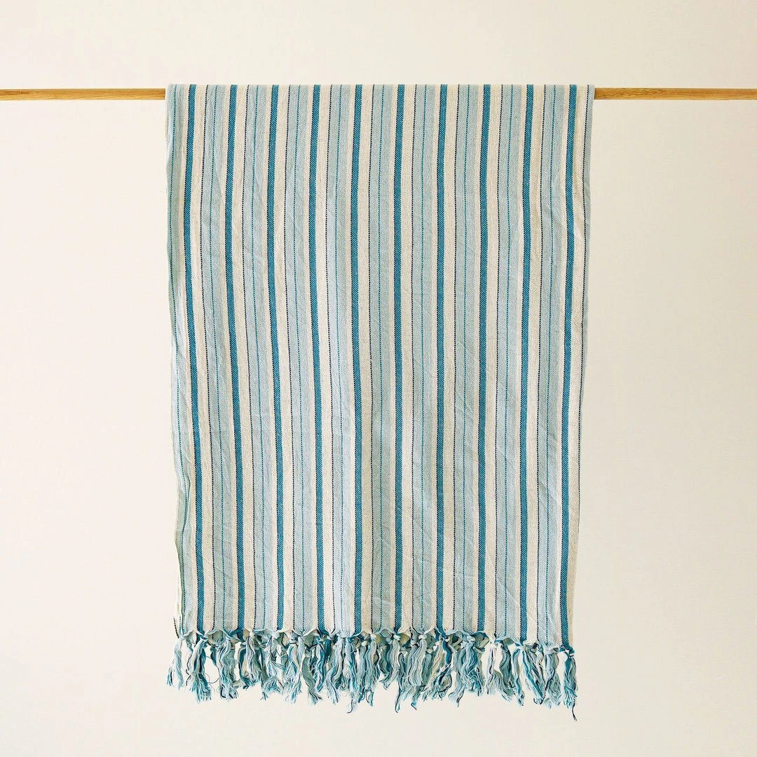 The calm, blue-green Sky Turkish Towel is lightweight, absorbent, and quick-drying, making it versatile in use – bath towel, beach towel, scarf, picnic blanket. The hand towel size makes an excellent kitchen or dish towel. Turkish towels (or peshtemals) have been used for centuries in hammams, the traditional Turkish baths, where bathing is a slow, relaxing ritual rather than a quick, daily need.