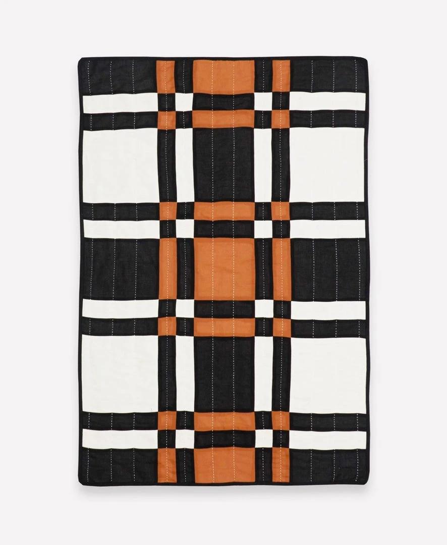 Neutral hues and an exaggerated scale create a modern twist to traditional plaid patterns heavily inspired by Indian madras. Small but functional in size, this plaid quilt is the perfect baby blanket for nurseries or makes an artful statement when hung as a tapestry. Tie the room together with coordinating Patchwork Plaid Throw Pillow. Also available in a larger size.