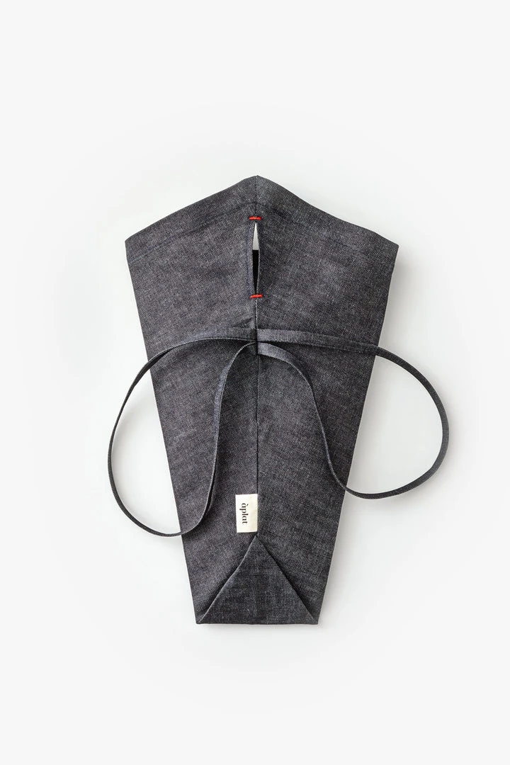 The reusable flower garden tote is designed to hold flowers, garden stems, and herbs. The two straps wrap around and tie in front for easy bundling, while the back-seam opening easily hooks on a wall or doorknob to hang vertically.