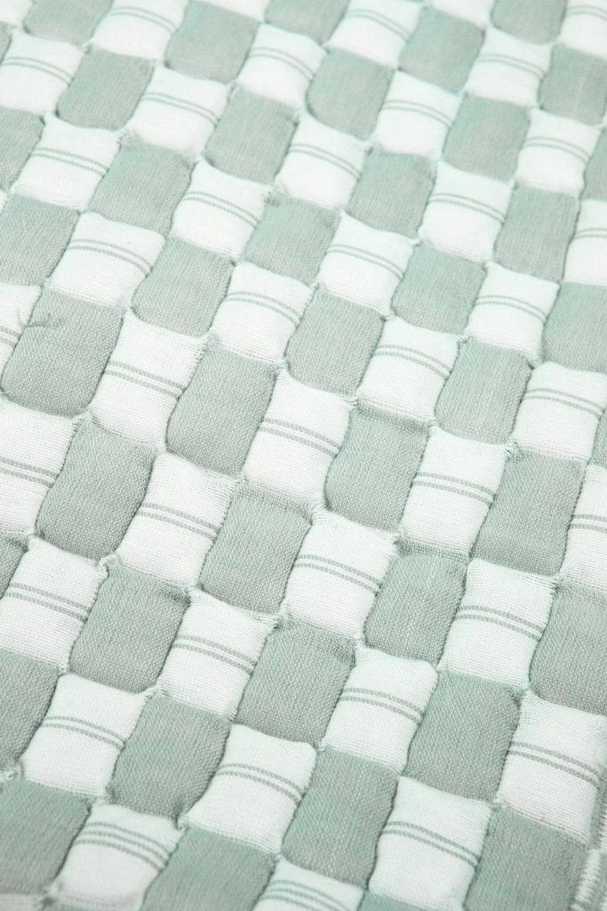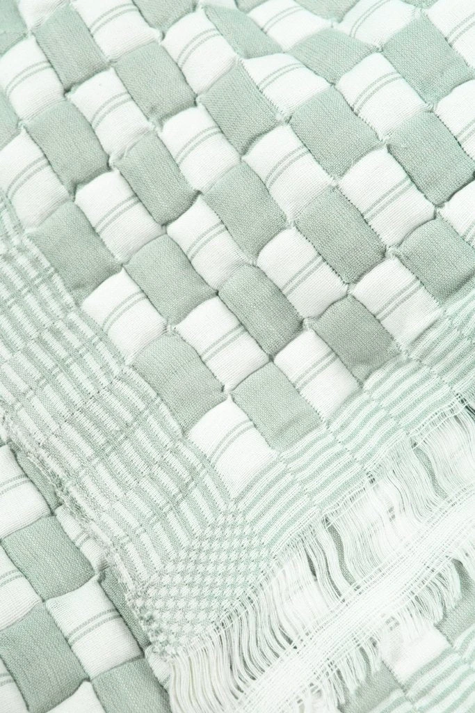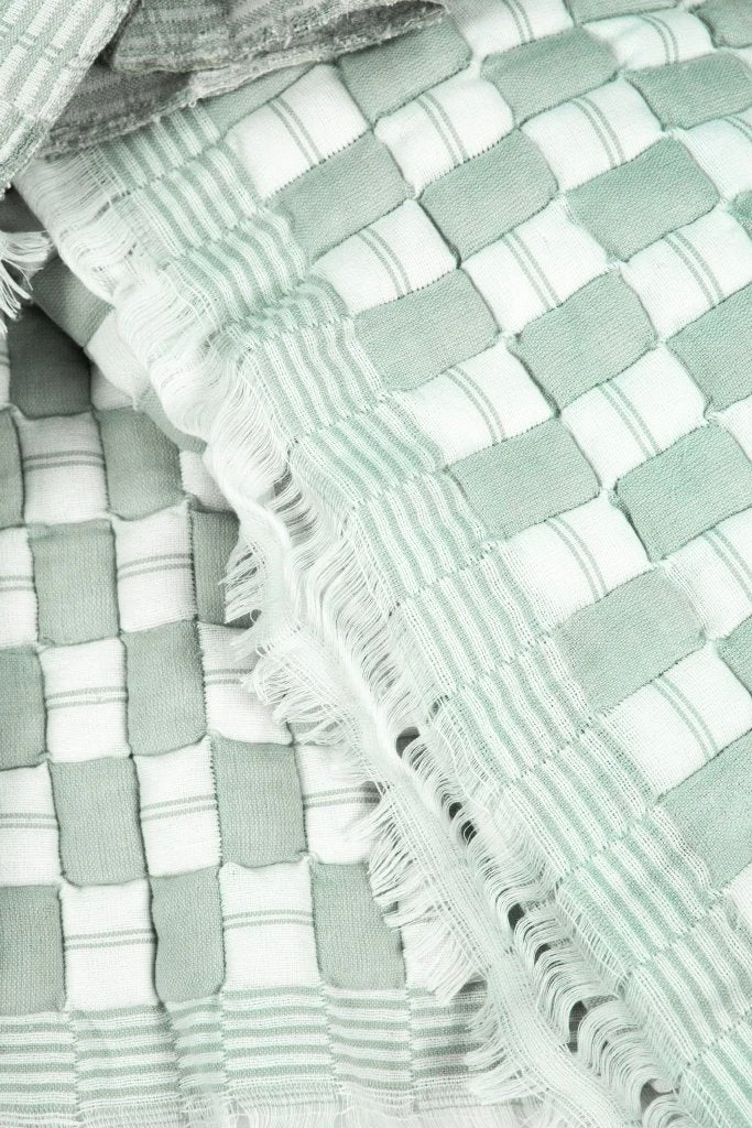 A handwoven quilted throw blanket from Gujarat India. Now only three families in India make this specialized weaving style that dates back to the 1860s.