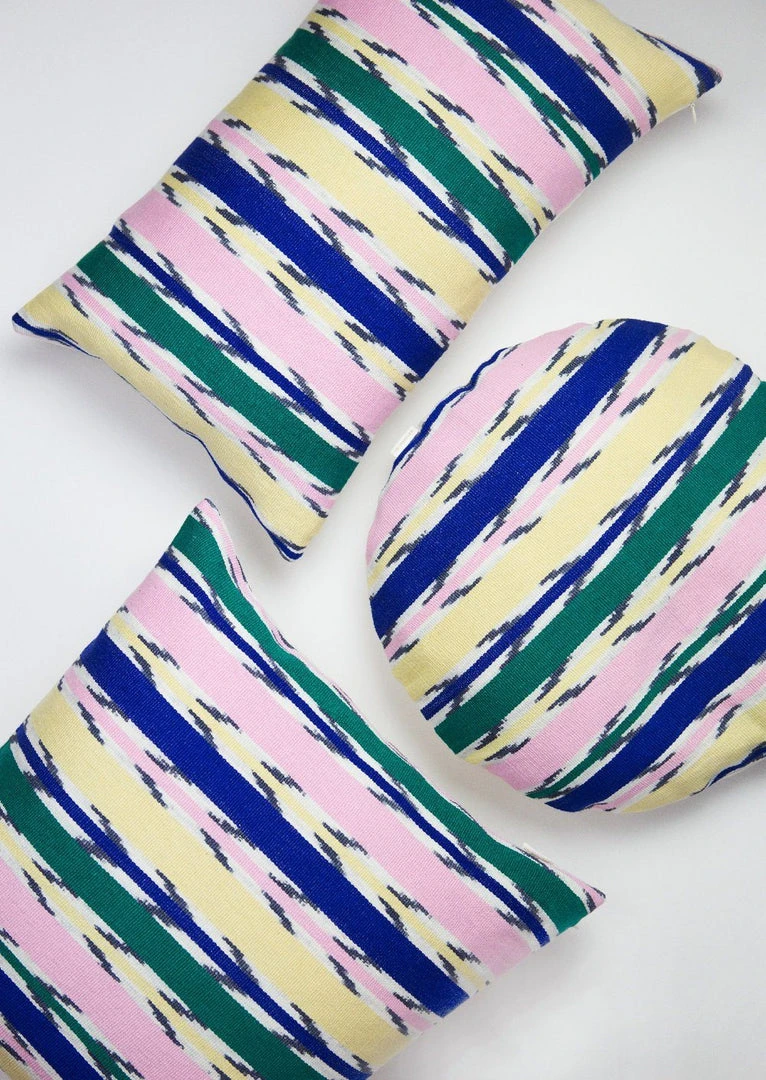 This pillow is woven by artisans using a back-strap loom. It features an intricate dyeing technique specific to the Totonicapan region.