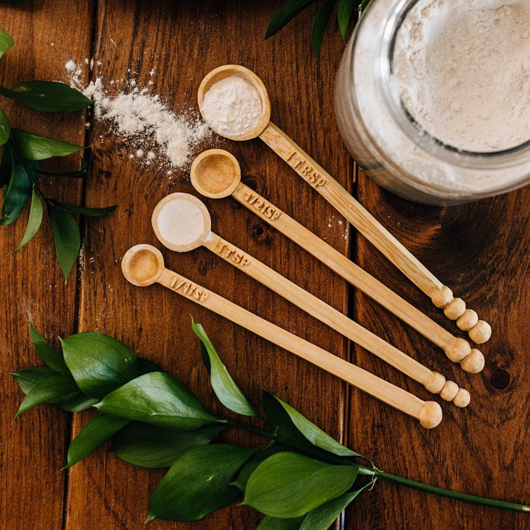 Place these hand carved, long handled measuring spoons with your wooden cooking spoons in a utensil holder – whether it’s a vintage crock or an acrylic modern canister, these beauties are meant to be seen.