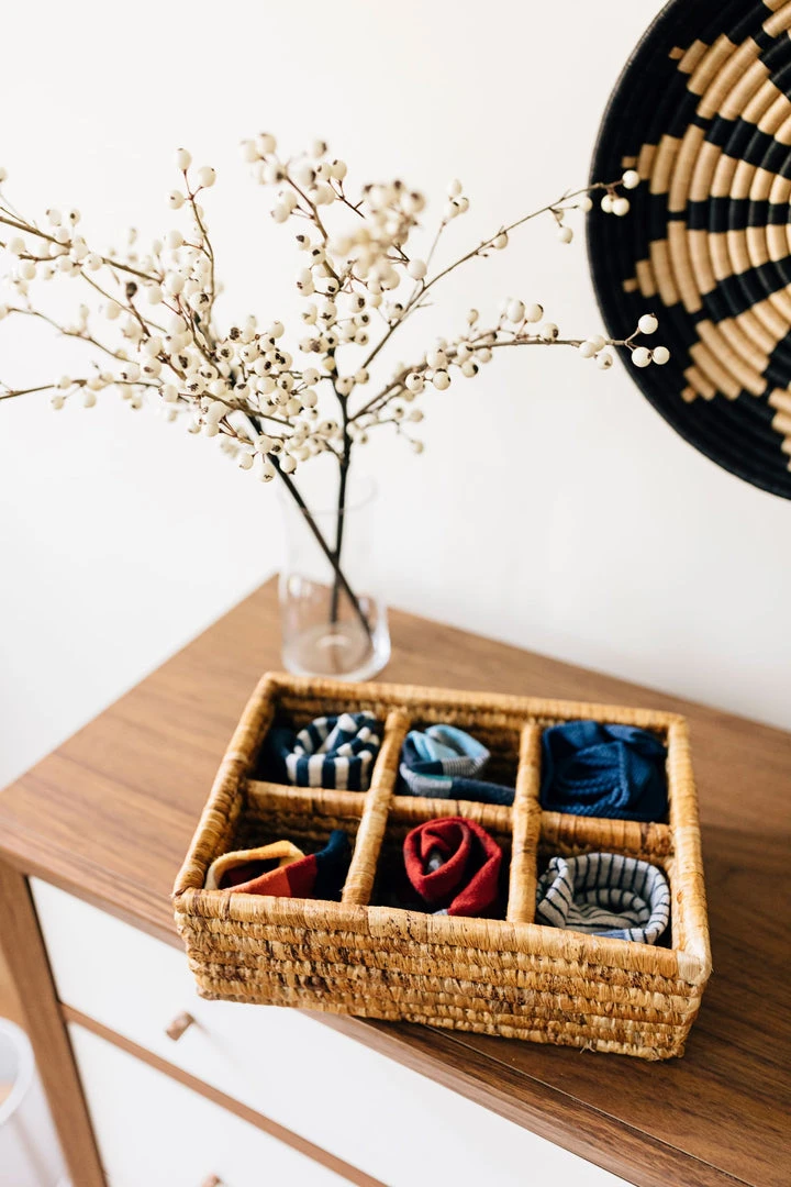This tray can be used to serve, store, and sort all kinds of things around your home. Artisans use a specially designed, handmade needle to thread dried banana leaves around the banana stalks. The result is a super-sturdy tray that’s great for carrying cups.