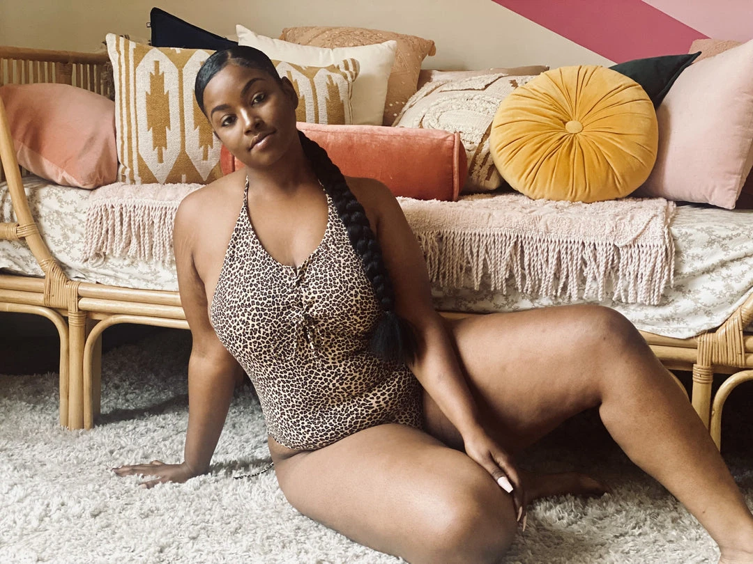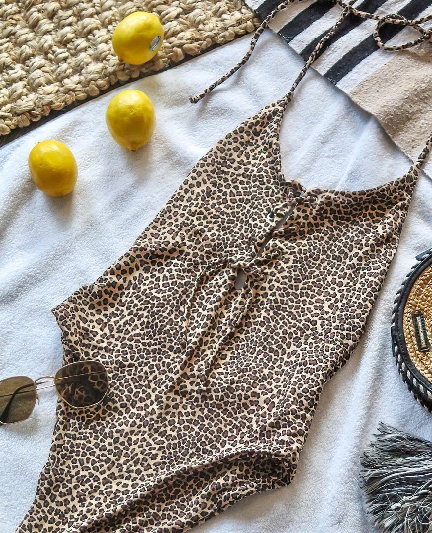 This monokini, inspired by the spots on a leopard, features lace detailing down the front along with adjustable ties on the neck and back. Made of textured eco-friendly Amni Soul Eco® yarn that provides UV protection, this swim set is looking out for both the earth and your skin.