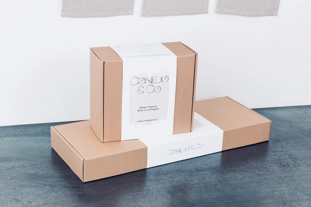 The Paloma minimalist, two-panel wall hangings are hand-painted in Los Angeles using high white and oyster artist’s acrylics and graphite on ivory linen. The raw, solid brass hardware was machined in Los Angeles as well. Each piece is made just for you, making them one of a kind.