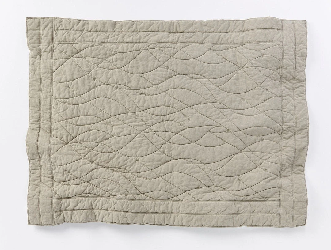 Soft and gentle jersey knit sheeting creates an organic blanket that babies will continue to treasure as they grow. An all-over quilted pattern channels the swaying grasses and reeds along the coastline, and creates tactile interest for little hands. Blanket is filled with organic cotton batting and trimmed with a wide double-stitched border all around.