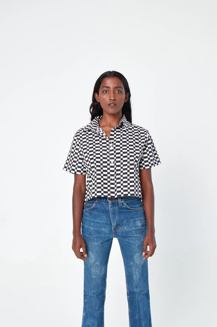 The Cami Crop Shirt is a boldly printed, exciting everyday shirt.  Made with hand screen printed fabric in small batches, which naturally have inconsistencies giving this shirt an elevated handcrafted look. Please note that the actual color of the shirt may differ from the pictures due to computer lighting and hand-made nature of the fabric.