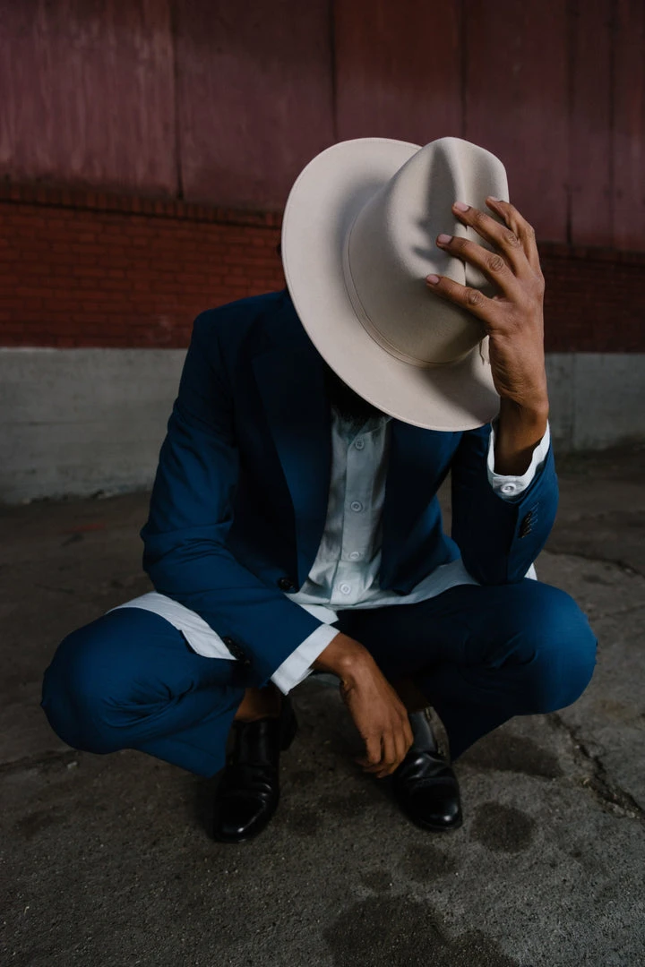 A men’s oversized heritage-style shirt in a pastel blue color. With a full button-down front, mock collar, and long sleeves, the Jaipur can be styled both up and down.