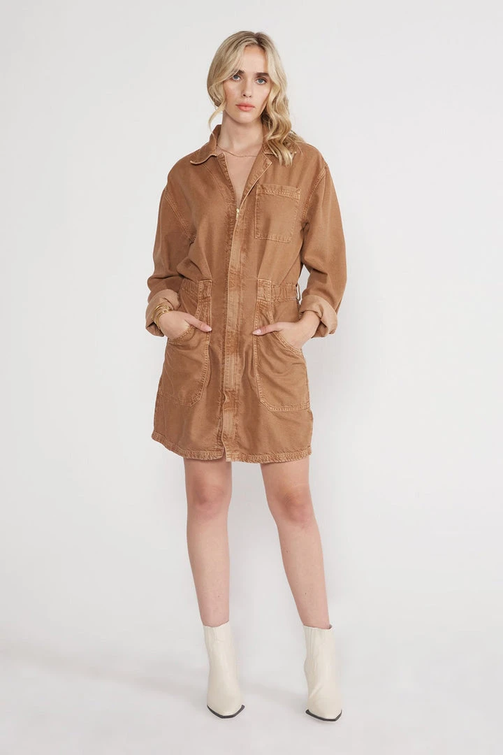 A refined dress with forward utility styling and an easy fit that hits just above the knee. This soft, medium-weight organic twill fabric is finished with a natural mineral dye.