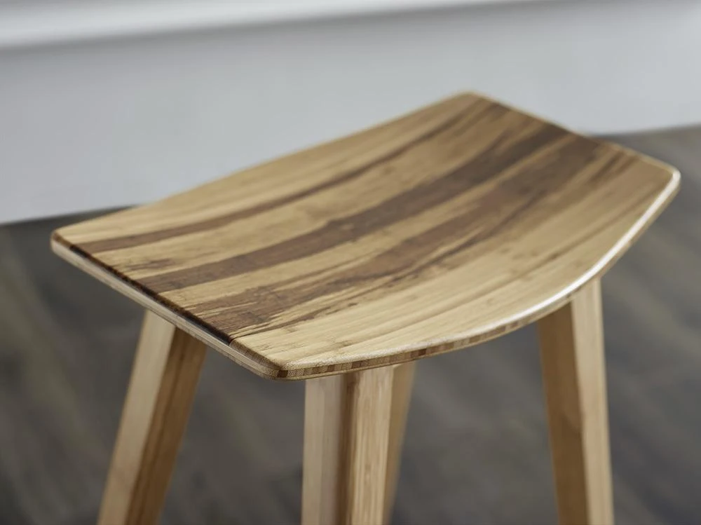 Shaped for comfort and support, the inviting Tigris counter stools feature contemporary splayed legs, and seat top accented with stunning exotic tiger bamboo. Durable and sturdy, the Tigris counter stools are built to perfection from earth-friendly solid bamboo.