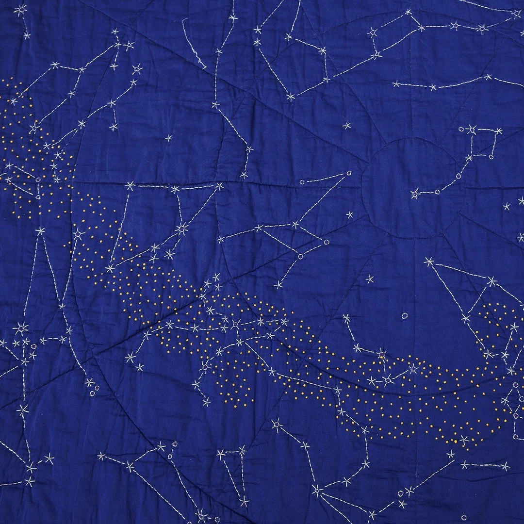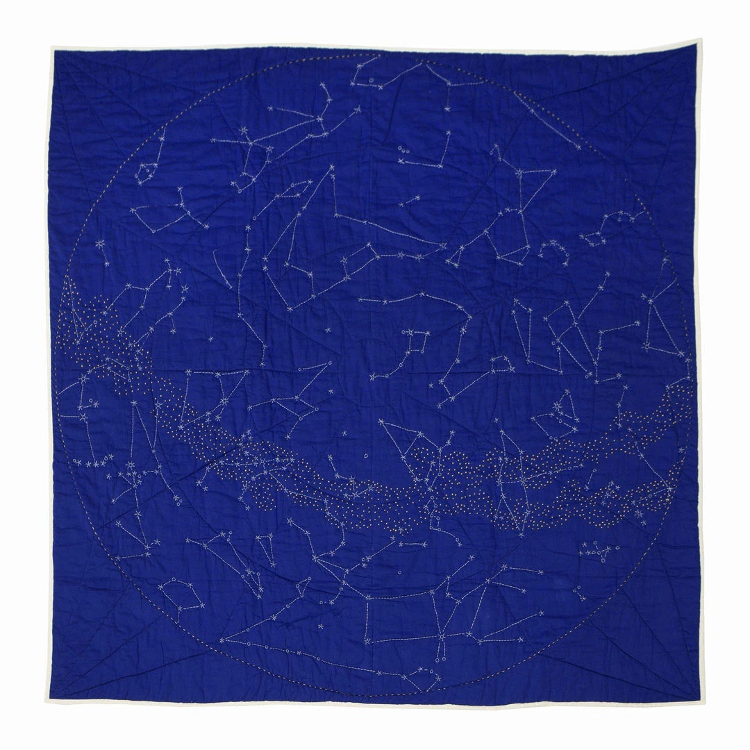 This cozy quilt depicts a global view of the Northern Hemisphere as if you were standing at the North Pole. Wrap up in this stunning, timeless, and organic quilt or use it as a show stopping wall hanging.
