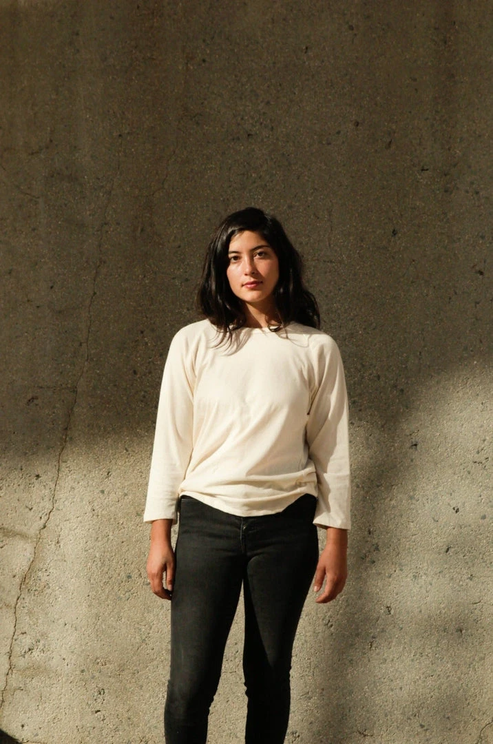 Incredibly soft and lightweight, this raglan will quickly become your favorite. The cropped sleeve raglan has a soft drape, smooth texture, and roomy, relaxed style. This lightweight top is made with 4.2 oz jersey fabric. The cotton used to make this tee is organically grown in the USA, spun and knit in the Carolinas, and sewn in the San Francisco Bay Area.