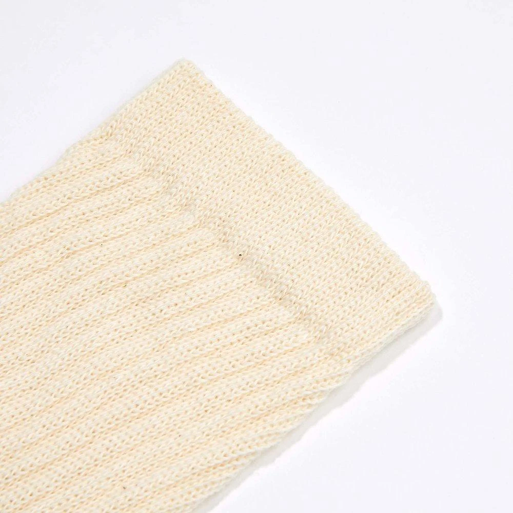 These socks are made from natural-white organic cotton. There are no dyes or bleaches used on these socks. Natural-white cotton is creamier in tone than stark bleached white. Crew Socks reach mid-calf. 6 pairs included.