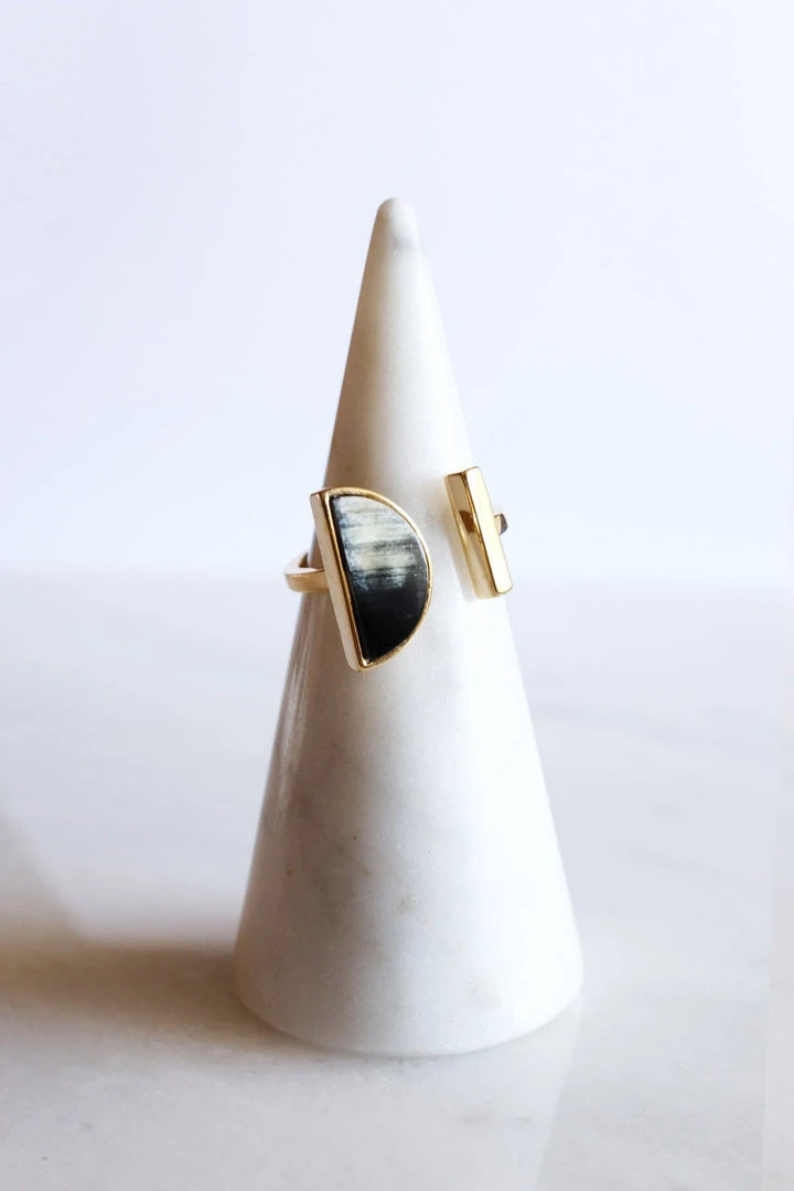 This ring features a dainty crescent-shaped horn. Perfect for any occasion, you can add this ring to your workwear capsule wardrobe to add a bit of charm to your 9-5. Beautiful on its own or added to a ring stack.