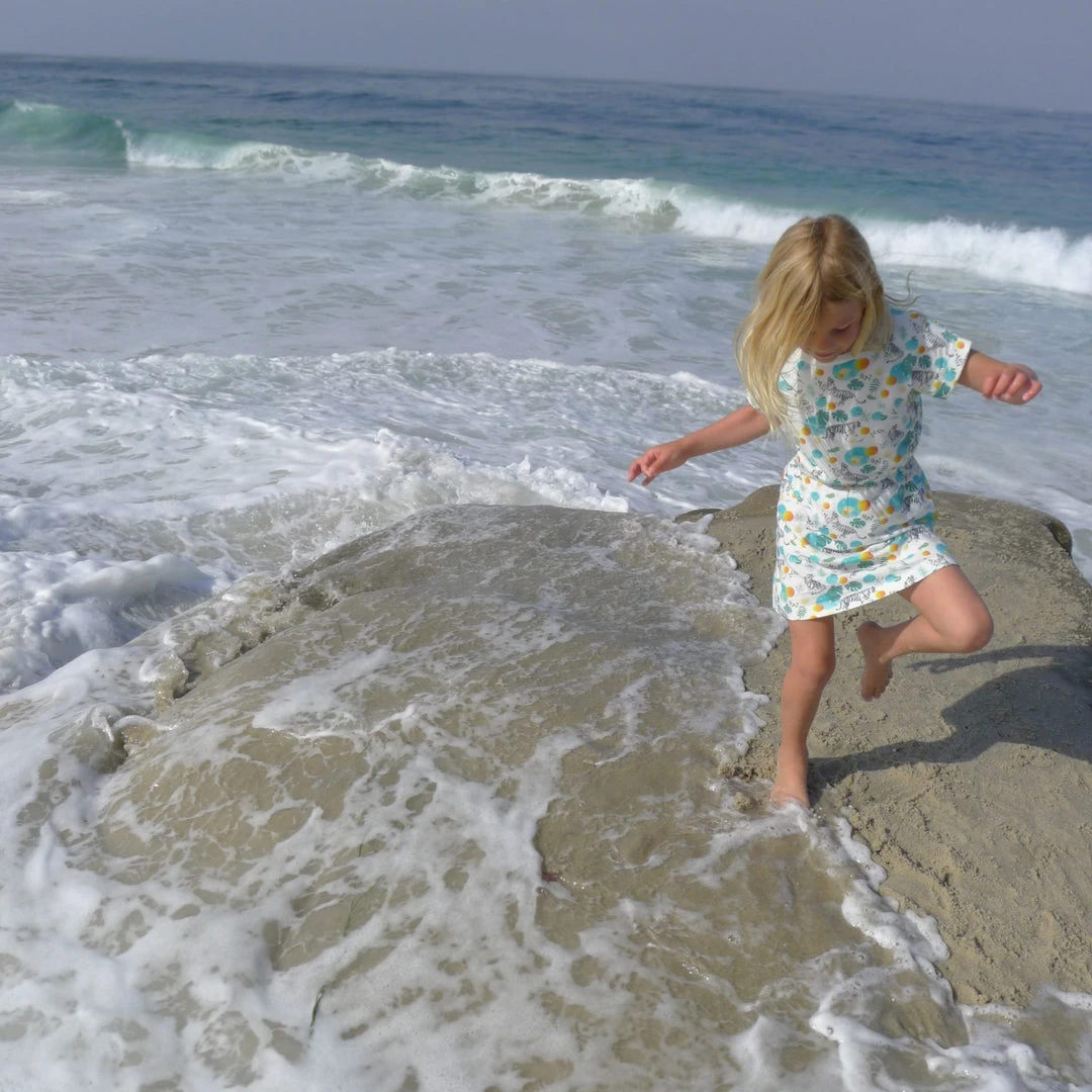 This jungle print short sleeve dress is the perfect dress for your little one that’s equally comfy as it is cute. Featuring an elastic waistband and rolled sleeves. For every dress that’s purchased, Honey Cake Tiger will plant a tree.