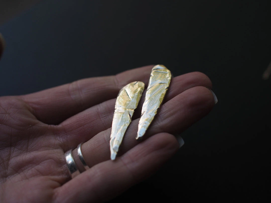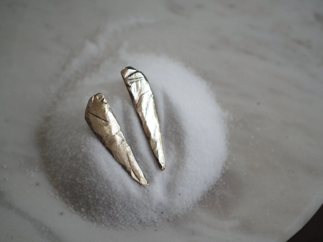 Sharp and shiny, these earrings are around an inch long and have a rough surface. We love these for adding an effortless flash to any outfit.