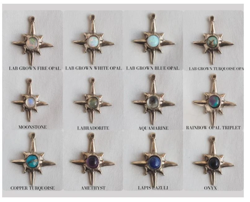 Rounded at the top with an angular step-like design at the bottom. A small moonstone is centered on each with gold hooked ear posts. Lab grown stones are made without harmful mining practices. Learn more about lab-grown gemstones on Made Trade Magazine.