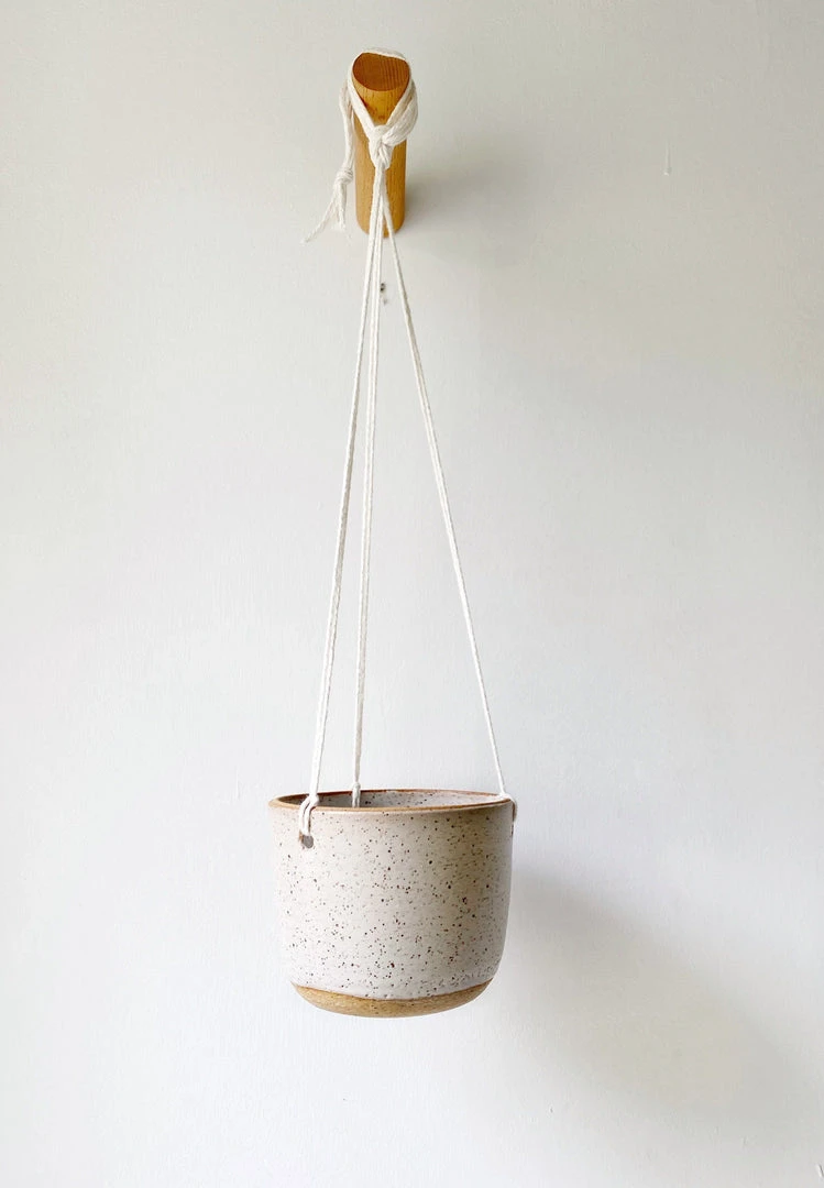 This hanging planter is simple and sleek and is the perfect addition to any plant lovers home. Features a hole in bottom for drainage.