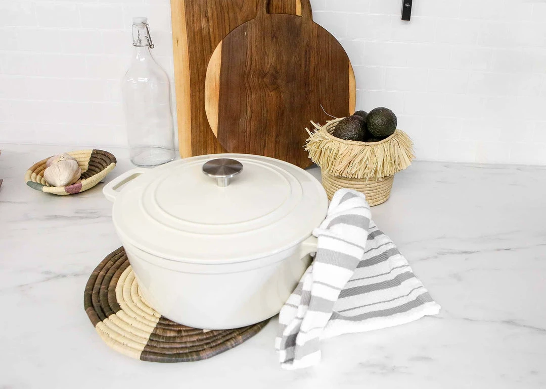 This trivet serves as a pot holder for any counter top or tabletop and is sure to capture the attention of the family and friends you are serving. It not only protects the table, but can be used as an exquisite center piece to any tabletop or as eye-catching wall decor.