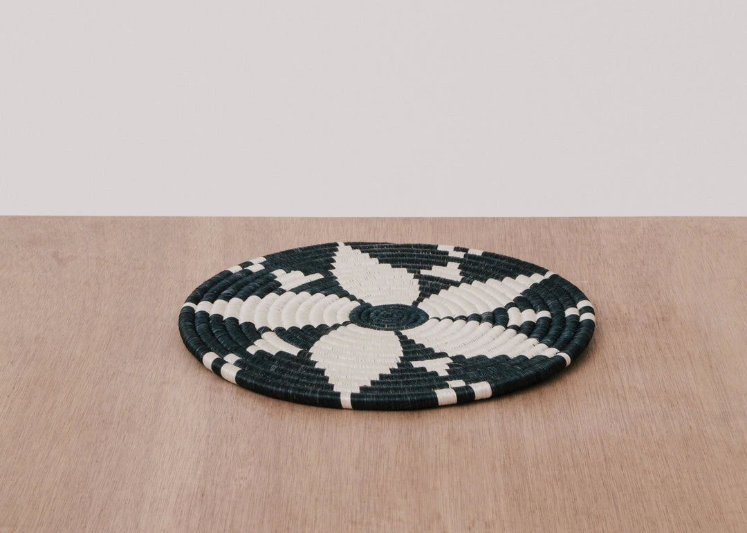This heat resistant trivet is perfect to set a tea kettle on or hot dish from the oven. With a woven loop attached on the back, they can be hung up as wall decor for a globally inspired feel. The sunburst pattern on these baskets is known as the “hope” design. Reflected on the Rwandan flag, this sunburst image stands for the county’s collective hope for a new dawn and brighter future.