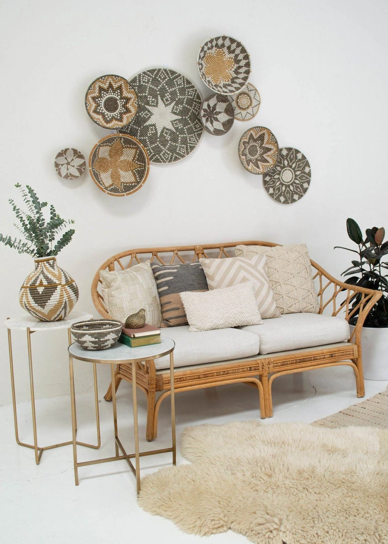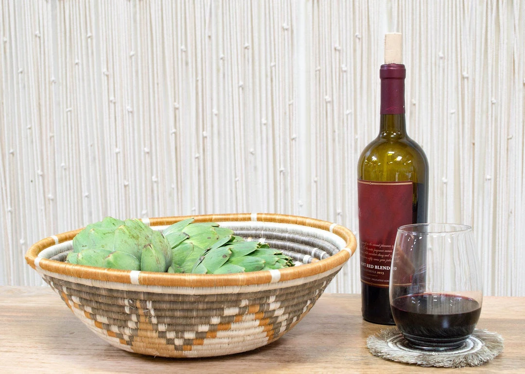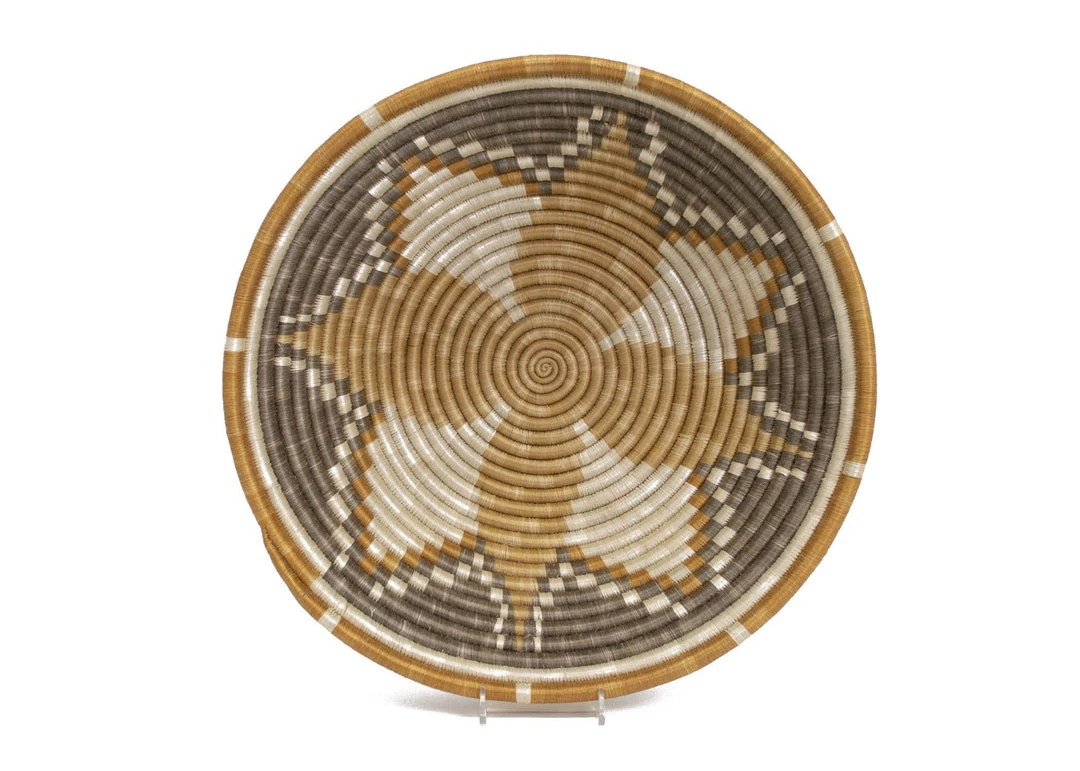 The 14″ Rwanda basket is an exquisite center piece to any tabletop or as eye-catching wall decor. A must have for every home decor enthusiast or someone looking to give a great personalized gift for birthday or weddings. You can also pair with other wall paintings or baskets. There is a hand-stitched loop on the back of each basket as ready to hang wall art.