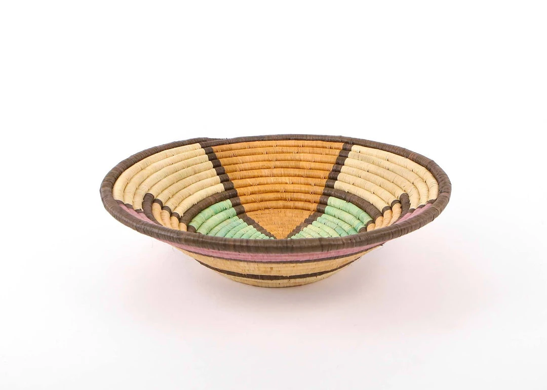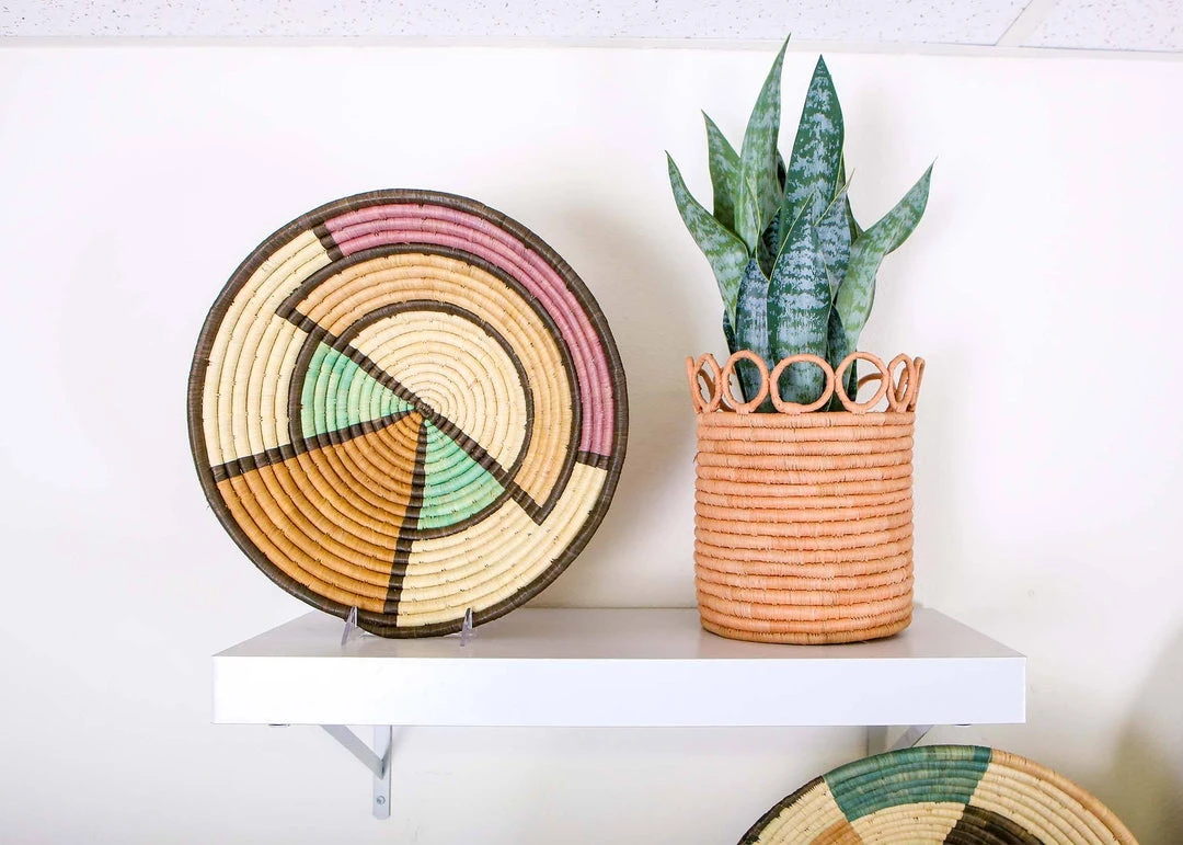 This extra large lilac and neutrals basket features soothing, delicate colors with a bold, geometric outline. Style it on your wall for a minimalist touch of color and texture, or mix it into your basket wall for a dynamic look. This basket functions as a centerpiece for your coffee table or dining table, or as a stylish storage option for your kitchen, bathroom, and anywhere else that could use some organization.