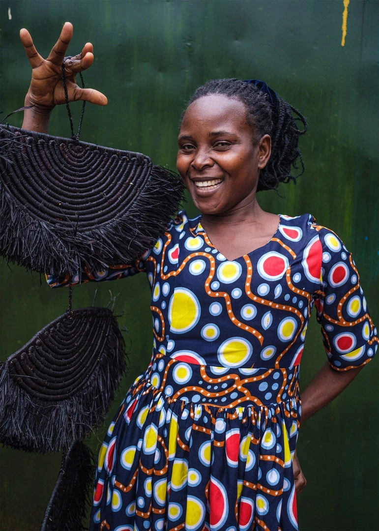 Style this bold and versatile piece as a stand-alone statement, or pair it with other plates and baskets to create a dynamic display. A hand-stitched loop on the back makes it ready to hang.