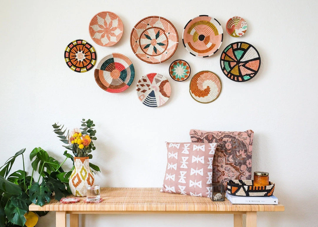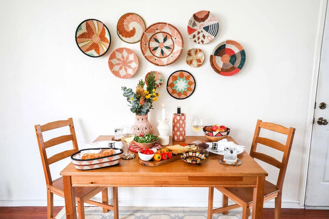 This heat resistant, gem-toned trivet is here to set a tea kettle on or hot dish from the oven. With a woven loop attached on the back, they can be hung up as wall decor for a soothing pop of color. The three-line pattern on this basket is known as the “unity” design and symbolizes the three ethnic groups that divided Rwanda in 1994, but who now work together to heal wounds from the past.