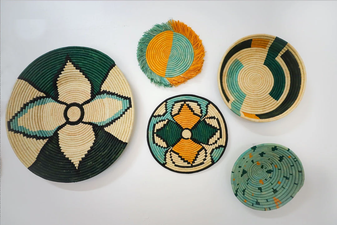 Intricately crafted with timeless tradition, this carefully dyed raffia fiber and sweet grass fringed wall disc is a stunning statement piece. Style it in any room for a pop of color and texture. This bright wall disc is the perfect size as a stand alone piece or pair it with other baskets and trays to create an eye-catching basket-wall