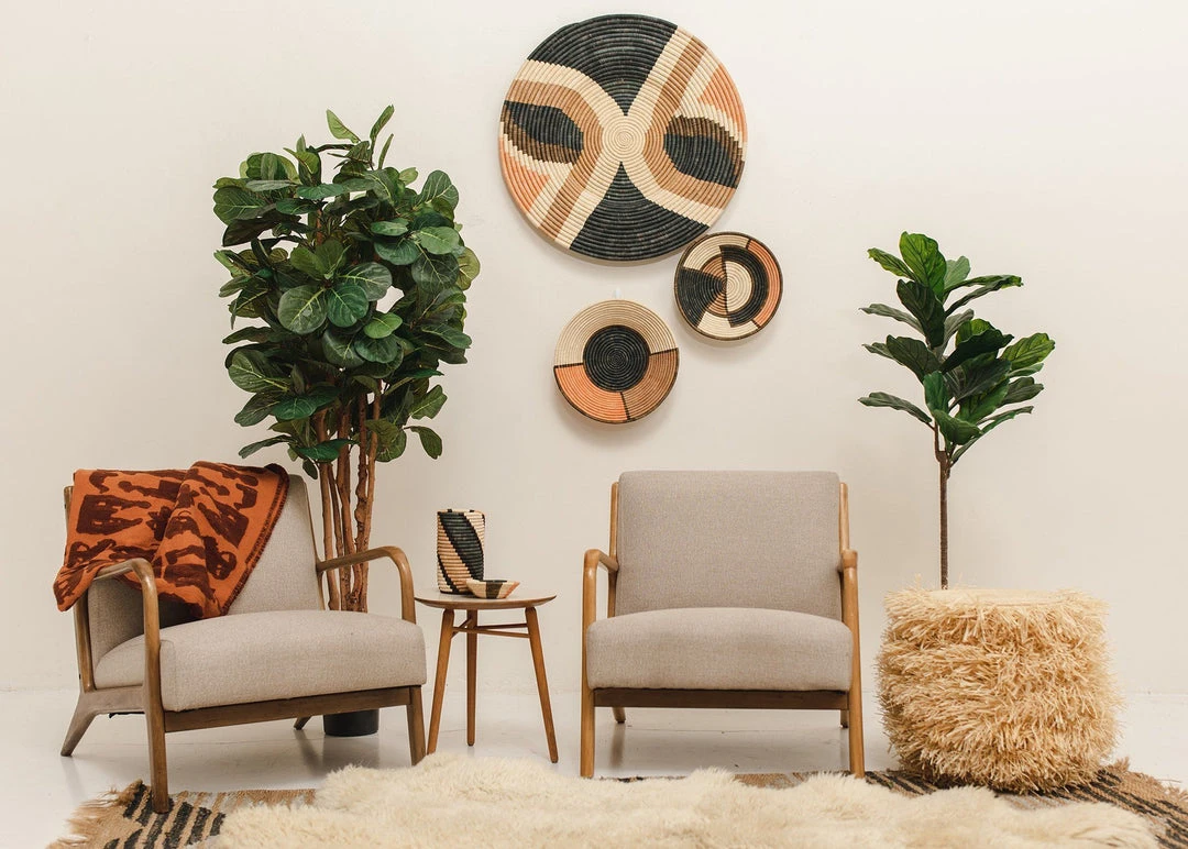 Intricately crafted with timeless tradition, this carefully dyed raffia fiber and sweet grass wall plate is a stunning statement piece. Style it in any room for a globally inspired feel. This beautiful wall plate is the perfect size as a stand alone piece or pair it with plates and trays for the cool color blocked family to create an eye-catching basket wall. All products are made by hand with love and vary slightly in color and size.