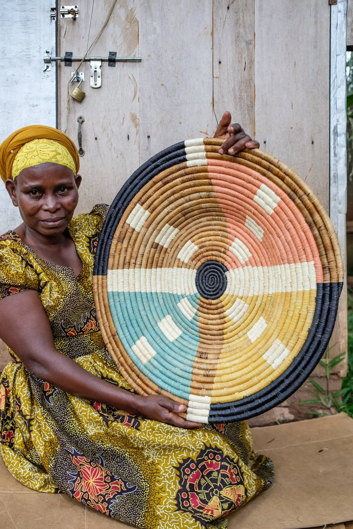 The Mbalwa Wall Plate features soft, neutral colors with a lively pattern. Hang it alone to create a minimalist look, or pair with with other wall plates and bowls for a dynamic display.