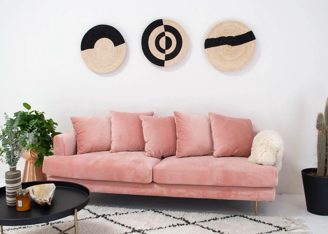 Intricately crafted with timeless tradition, this carefully dyed raffia fiber and sweet grass wall plate is a stunning statement piece.