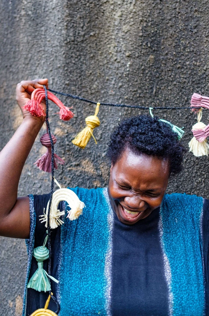 Hang this artisan crafted, boho-inspired Over the Rainbow Mod Garland during the holiday season on a shelf, the wall, or above a closet.
