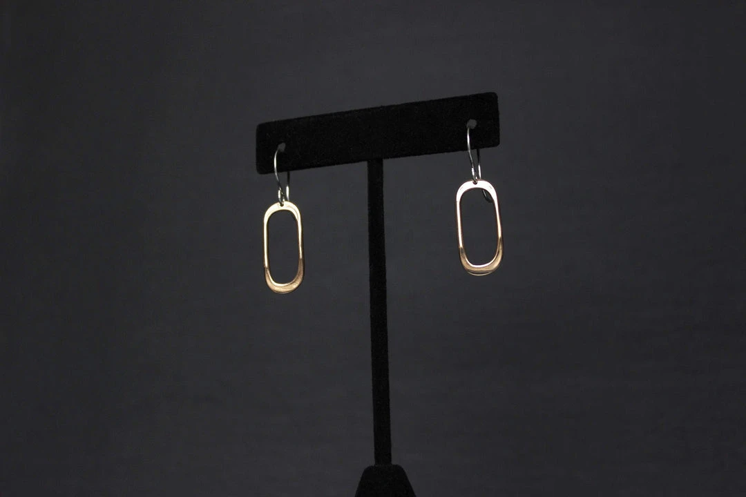 These geometric statement earrings are simple yet unique. Easily dressed up for a night out or worn with a t-shirt and jeans to add shine to a casual look.