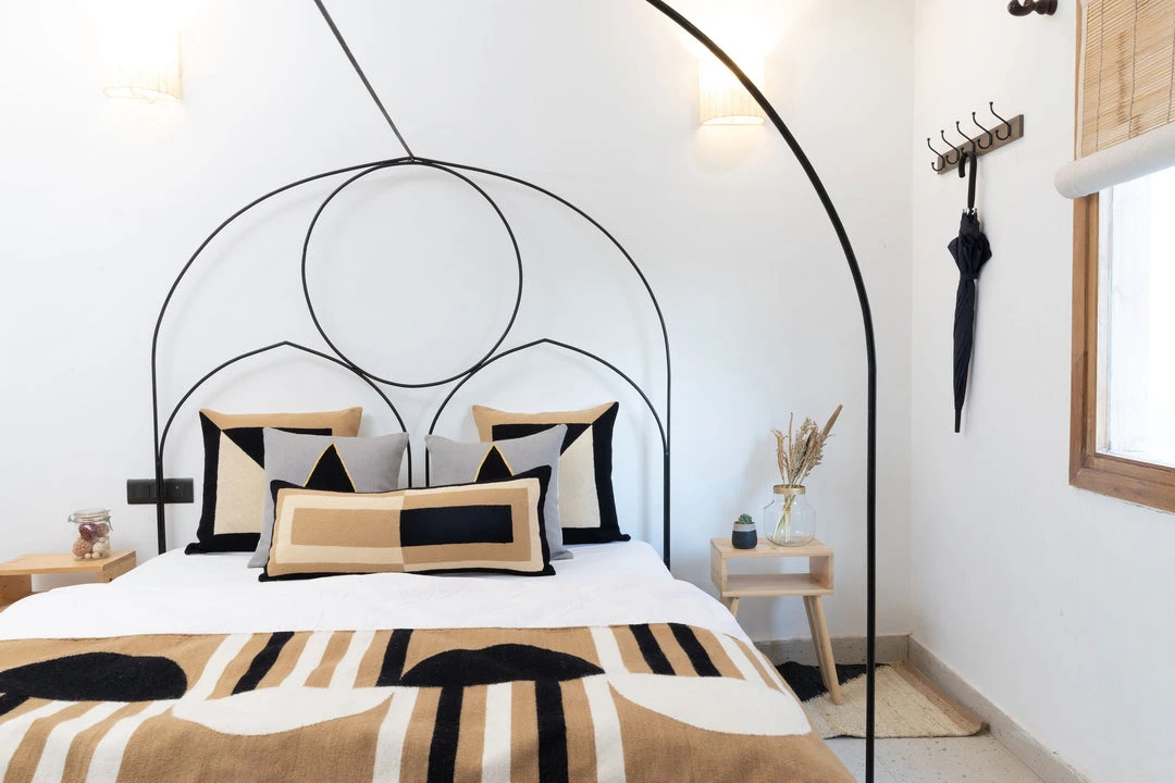 This geometric throw pillow has been ethically hand- embroidered by artisans in Kashmir, India, using a traditional embroidery technique that is native to the Kashmir region. The purchase of this handcrafted pillow helps to support the artisans and preserve their craft. Each piece may vary slightly due to the nature of handcrafted goods.