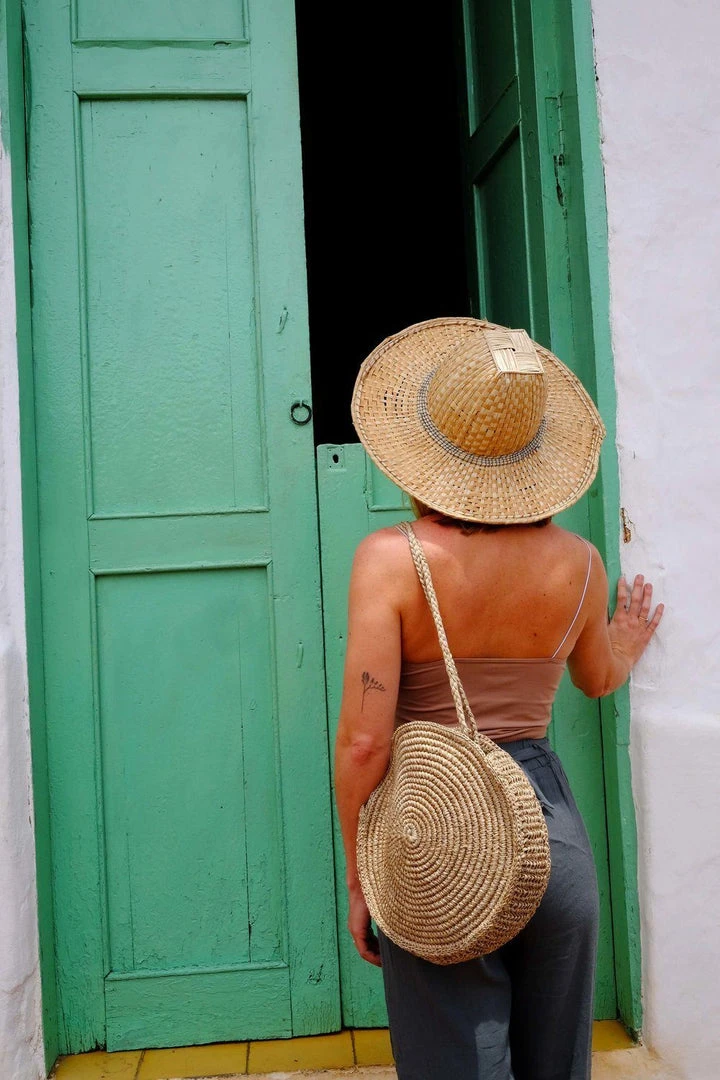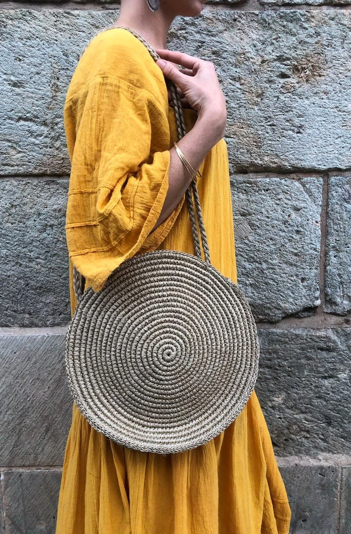 A summery shoulder bag made of fique – cactus fiber – grown and harvested locally. Made by Soledad Tello in Curiti, Santander.