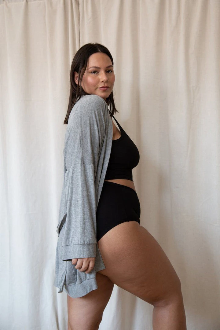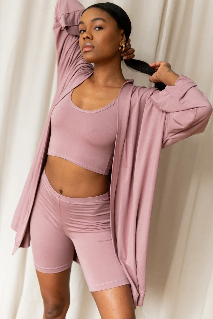 The Oli Robe is the perfect piece to throw on while at home without looking like you’re in the middle of spring cleaning. Hitting mid thigh with raglan loose sleeves, side pockets and a waistband for chic comfort.
