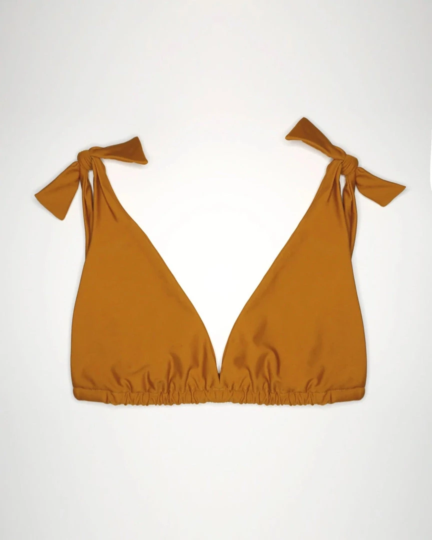 The Nikki Recycled Swim Top is a classic style that allows you to decide how much cup coverage you want and offers a perfect fit with tie shoulders. A g-hook closure with three loops lets you find the right fit for the most comfortable wear. Double layer cups with no padding allows a comfortable yet supportive fit. The Nikki Top is named after Nikki Beach in Greece.