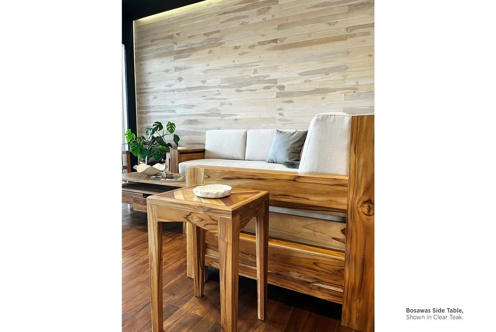 This herringbone side table features a handcrafted inlay of mixed tropical hardwood.