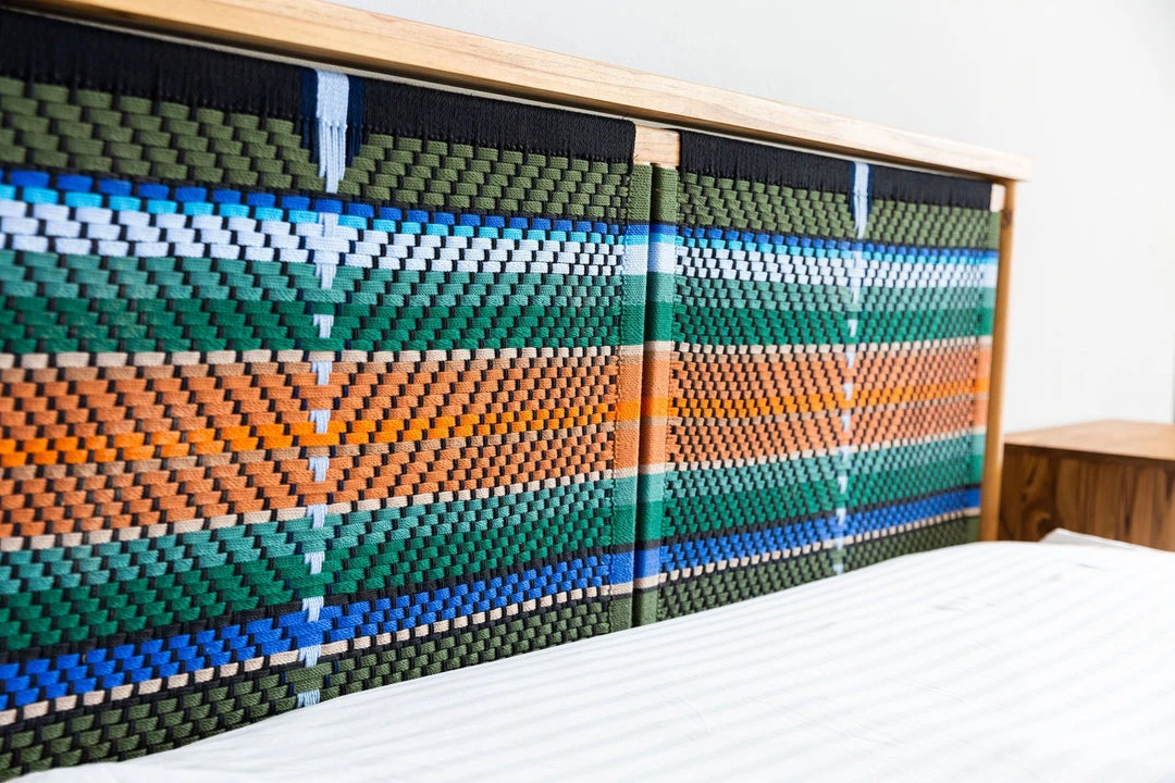 The Mot Mot pattern of this bed is inspired by the colors of the Guardabaranco or “Mot Mot” bird which is the national bird of Nicaragua. Its colorful pattern is further complemented by a solid wood frame. Add it to any bedroom for a pop of color.