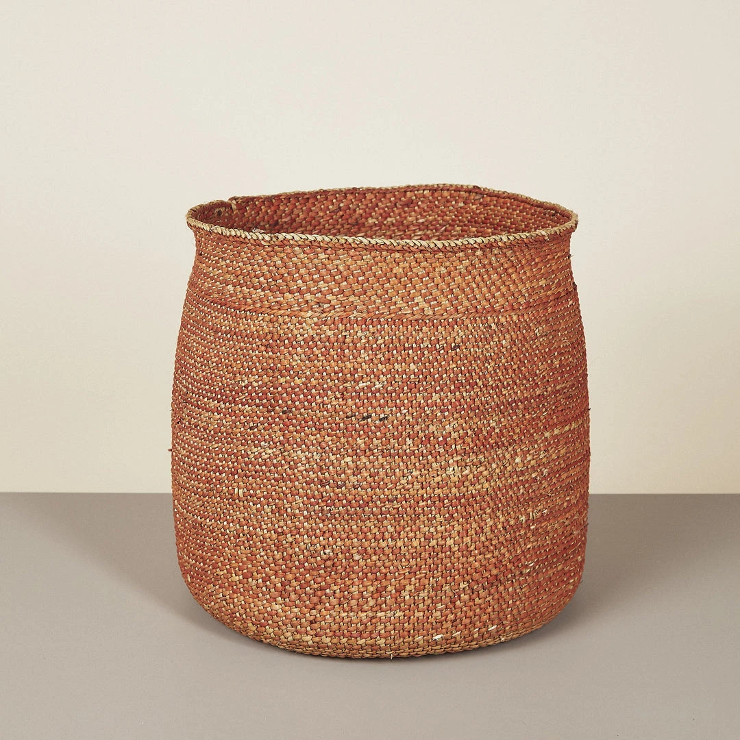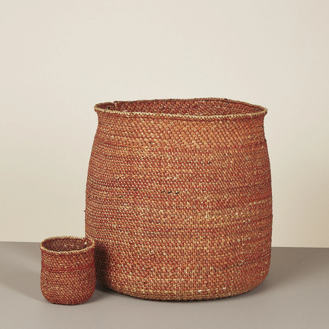 This collection of Iringa baskets features a rich, rust color. Woven out of wild Milulu grass which grows abundantly in east Africa, it gets its deep coloring from natural plant dyes. These baskets give you natural, contemporary style while being completely functional.