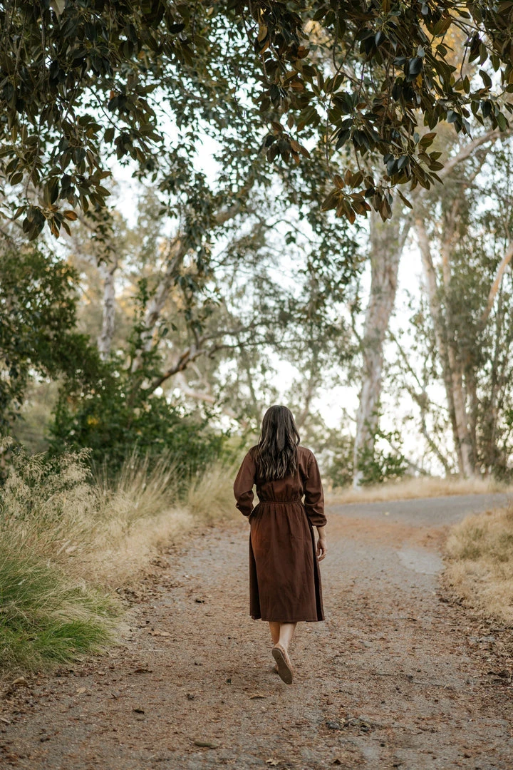 The classic midi dress silhouette with a twist. Dolman sleeves are cinched so you can wear then pulled up or down. A touch of glimmer from the smooth gliding brass zipper and hidden side pockets makes it an easy choice for everyday wear. The swingy longer length skirt looks elegant paired with boots or heels.