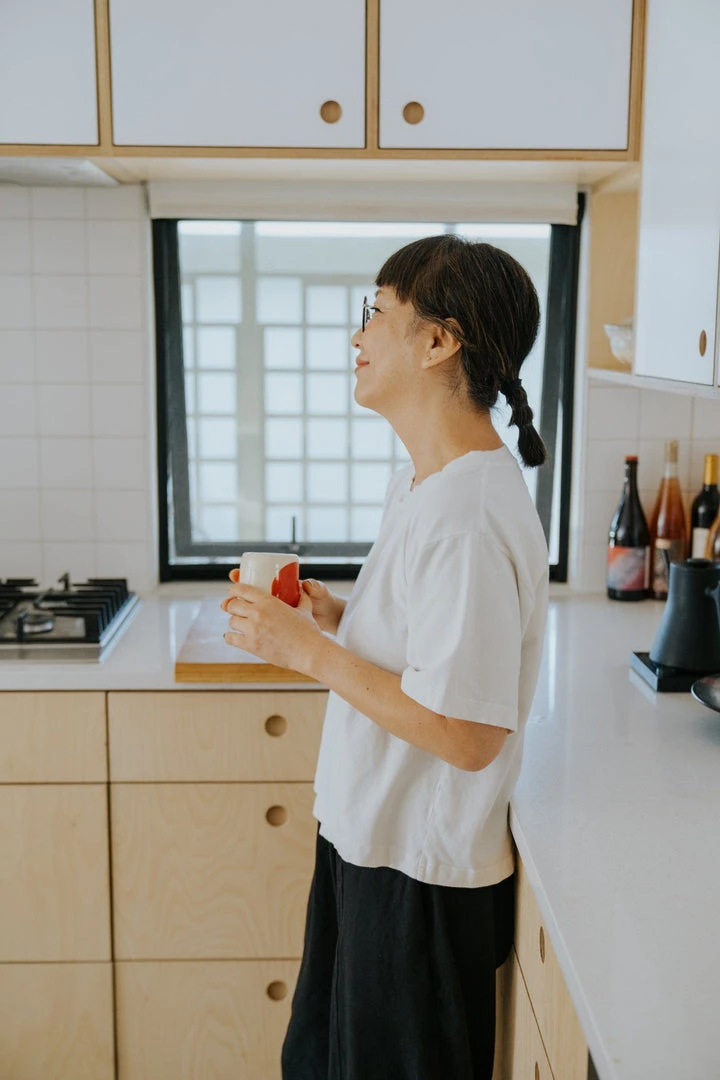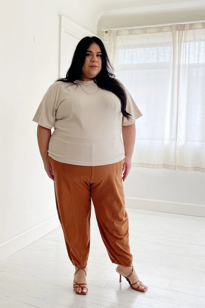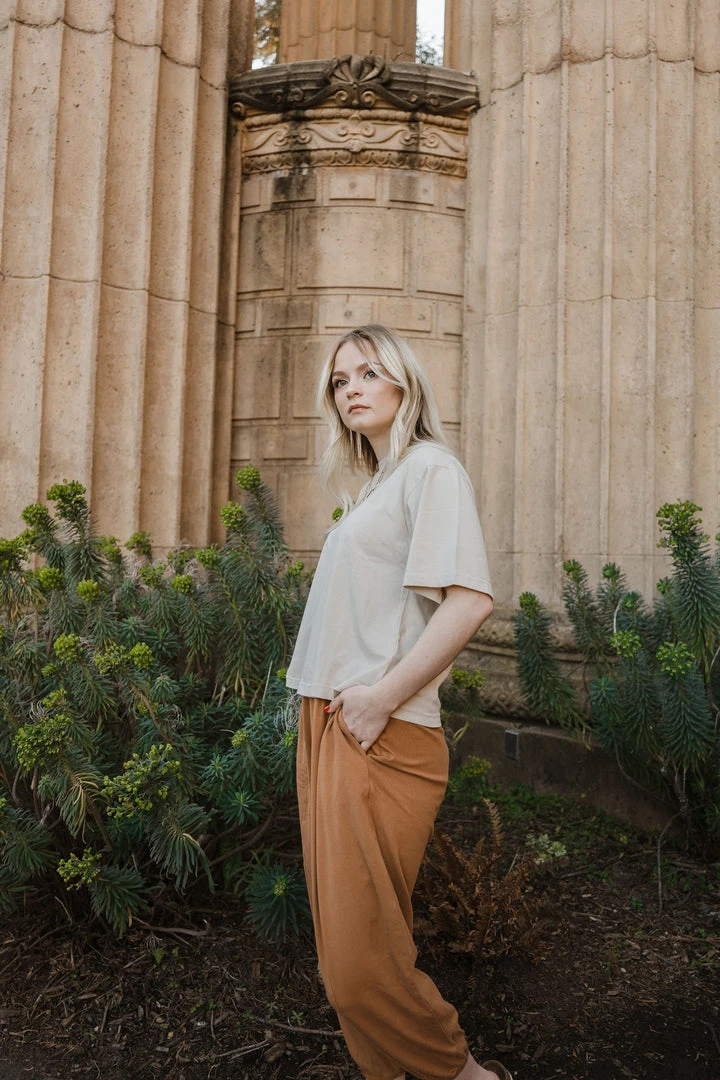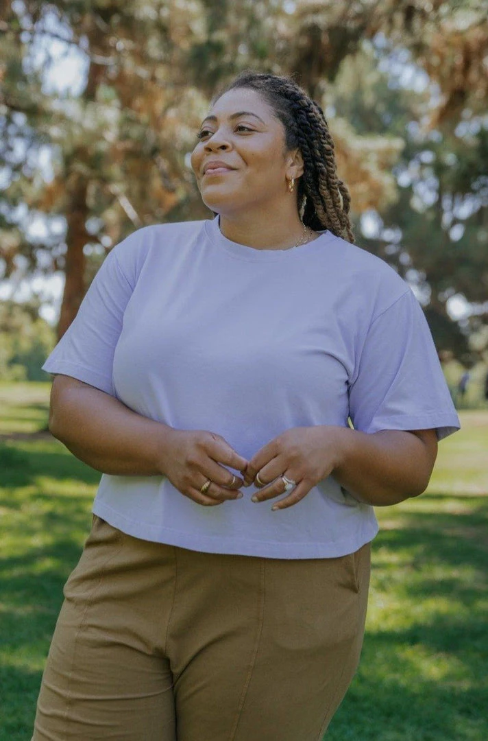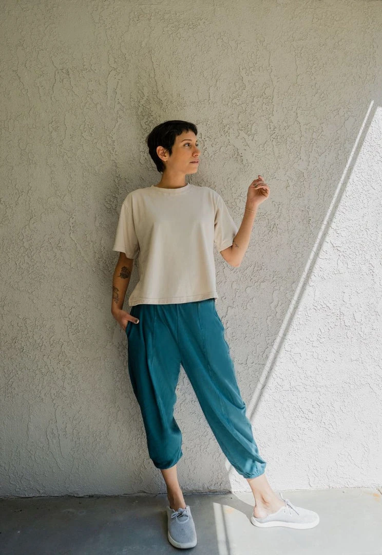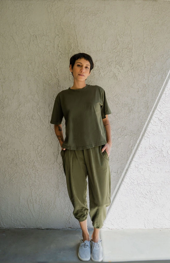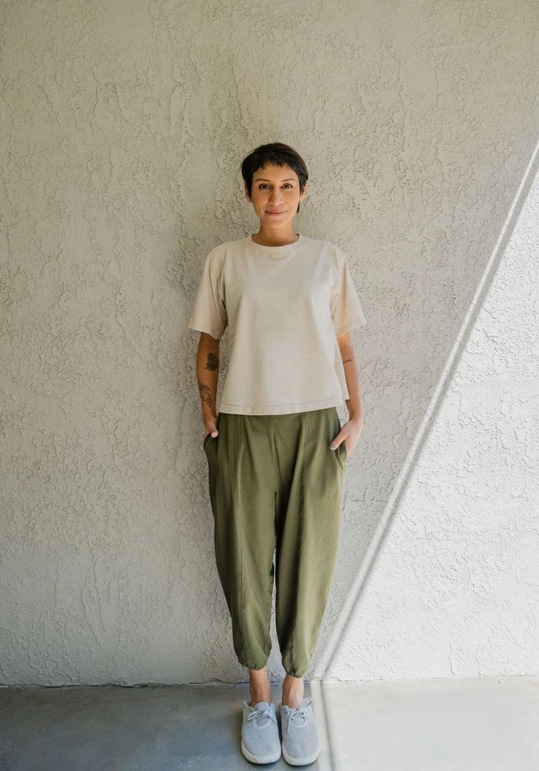 An essential for everyday wear at home or out. Ultra-soft, not too fitted and not too loose, cropped at the right length so you can pair it with high waist jeans and pants. Available in easy to wear colors. Worn here with the Day Lantern Pant.