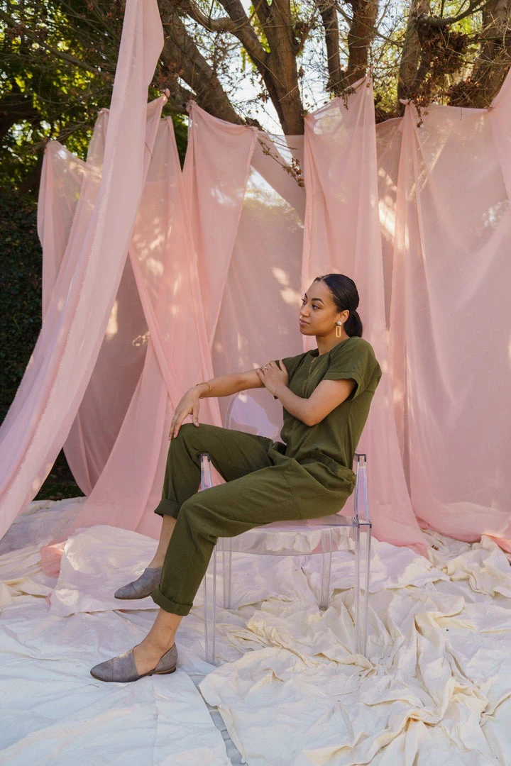 For those days when putting together an outfit is not on the agenda, just zip this jumpsuit up and go. This easy to wear silhouette inspired by utility jumpsuits looks effortlessly cool with its no-fuss exposed zipper design. Oversized side pockets add a touch of artsy flair with a look that carries you through every busy day from errands, to work, to playdates. Very travel friendly, also perfect for nursing mamas.