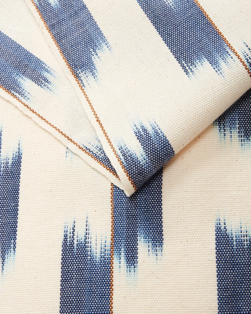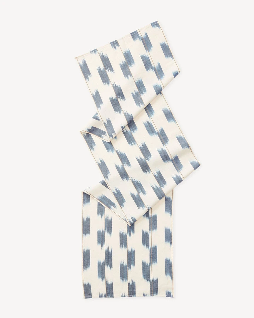 Add a pop of color to your dining table with this Ikat runner. Ikat, or jaspé, is an ancient resist-dyeing technique found in many parts of the world. The cotton threads are first knotted and dyed before warping the loom, resulting in a painterly effect after weaving. Style in any room on a dining table, coffee table, dresser, or bookshelf. Handwoven by a family-run cooperative of weavers in Nahuala, Guatemala.